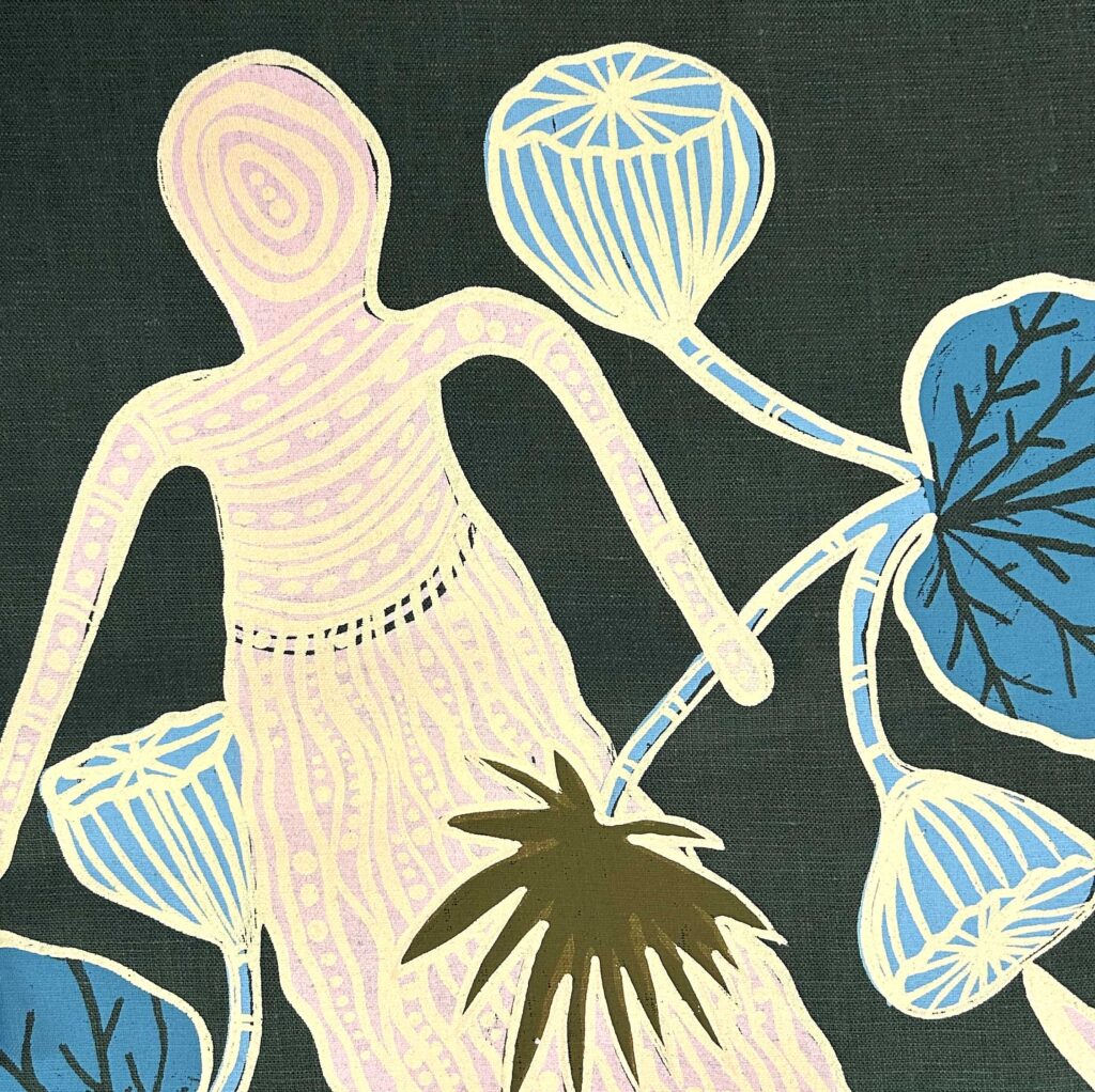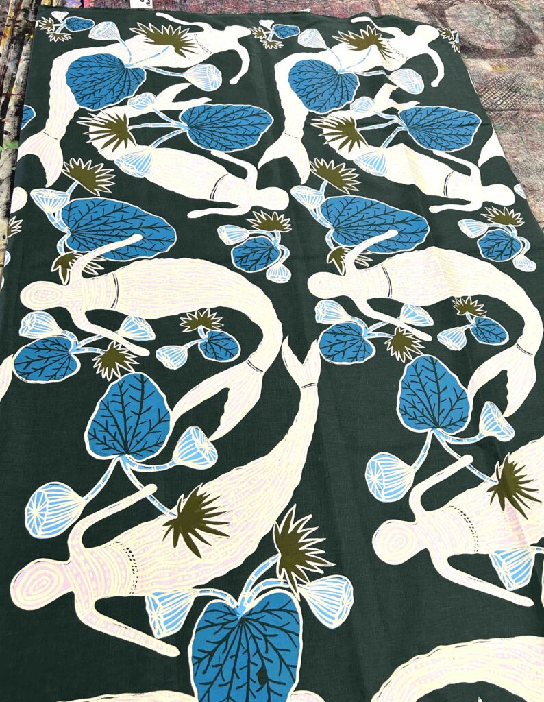 Kieren Karritpul – Mermaids on dark green linen (2m)