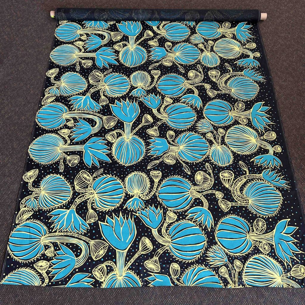 The artist is paid royalties for every metre printed